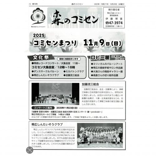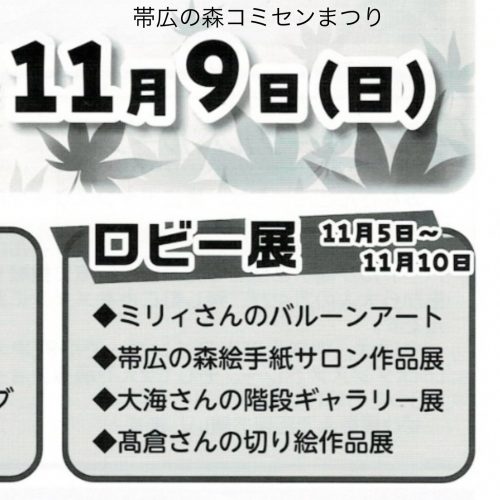 11月9日(日)は帯広の森コミセンまつり文化祭が行われます👏
