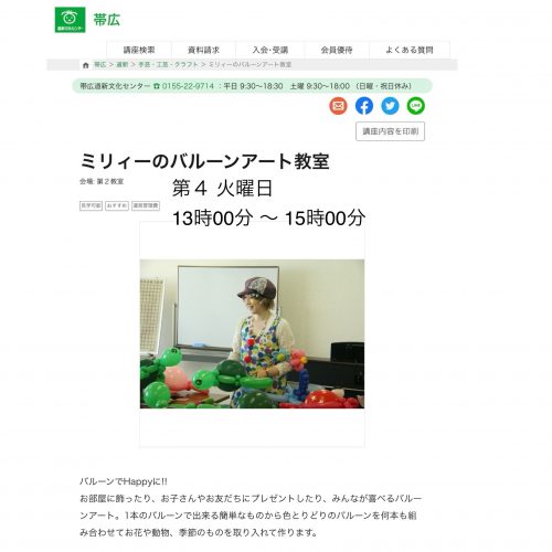 13:00〜15:00にミリィーのバルーンアート教室をしています