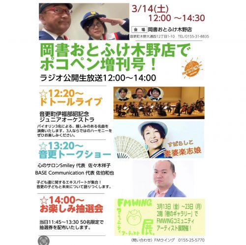 📻「岡書おとふけ木野店様でポコペン増刊号!」をやるそうですよ🌟